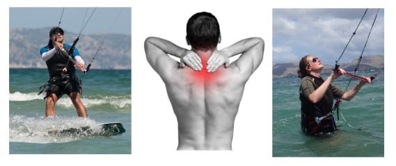 Im kleineren Maßstab ist die Unbequemlichkeit durch längere Haltungen im Laufe der Zeit oder Muskelüberlastung verursacht. Die häufigsten Verletzungen sind zervikale Überanstrengung als Konsequenz, um ständig auf den Kite zu schauen.