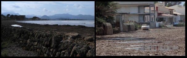 The peak of the tide reached the buildings, stone walls and fences near the beach. Tons of posidonia were carried to shore